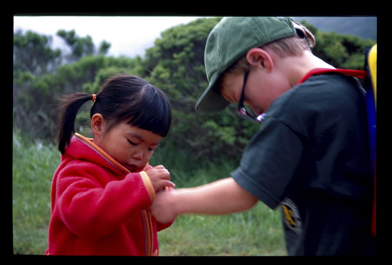 4/8 Home/2004 photos/Day hike in Marin / Caleb shows Maggie a bug ‹ › Rate this photo Informations Tags 2004 , California , hiking , Maggie , Marin , People Albums 2004 photos/Day hike in Marin